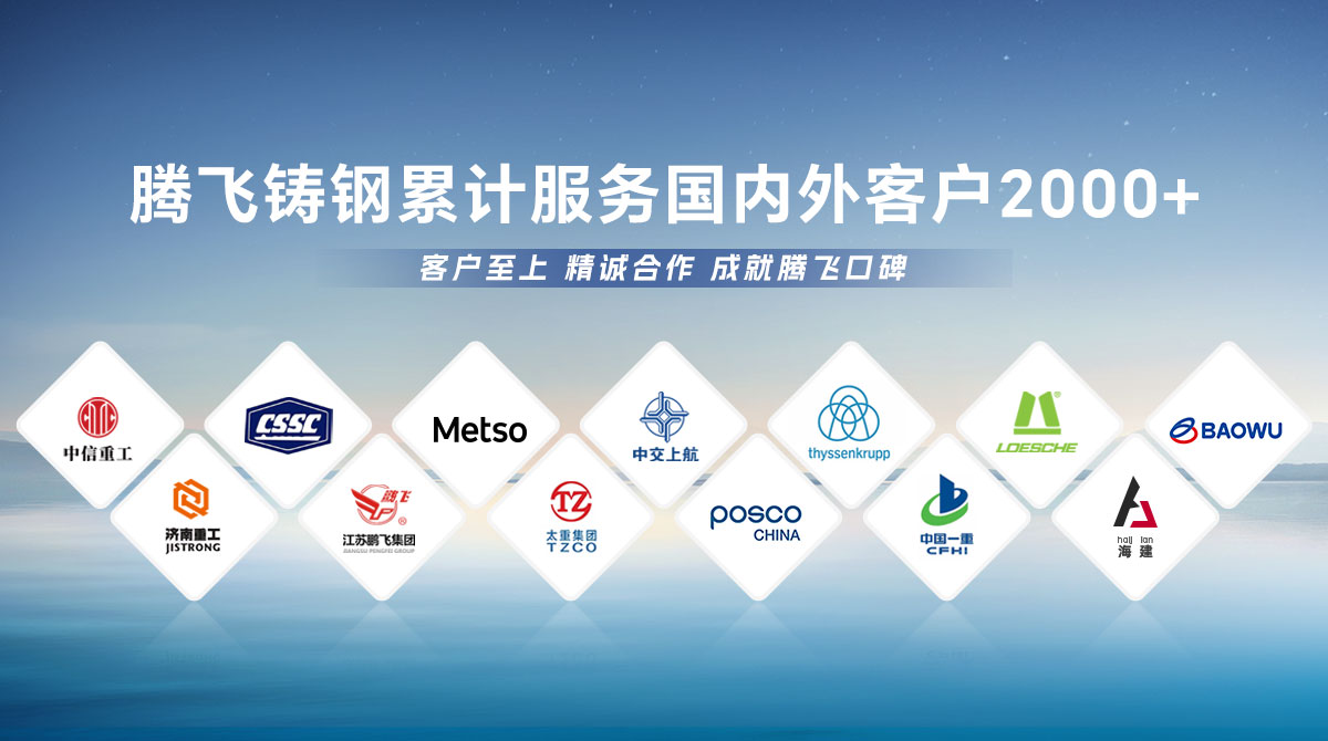 騰飛鑄鋼成立于2006年,位于全國鑄造基地河南省新鄉(xiāng)市,擁有員工300余人,是一家從事150噸以下碳鋼、低合金鋼、不銹鋼鑄鋼件研發(fā)、制造、服務為一體的國家高新技術企業(yè)?! 」就ㄟ^了ISO9001國際質量管理體系認證,擁有2項發(fā)明專 利,2項河南省科技成果、25項實用新型技術,通過了“環(huán)??冃гu級B級企業(yè)”驗收,先后榮獲“河南省鑄造行業(yè)綠色發(fā)展企業(yè)”、 “河南省科技型中小企業(yè)”、“河南省專精特新中小企業(yè)”等榮譽稱號?! 」緭碛?臺25噸電爐,4臺大型天燃氣熱處理爐、10米回旋自動拋丸機一臺, φ8m數(shù)控立車、φ10m數(shù)控滾齒機等各類高精裝備100余臺套,年產(chǎn)能3萬余噸,能為客戶提供從產(chǎn)品設計、木模加工、大型鑄造、大型加工一站式服務,產(chǎn)品廣泛應用于建材、冶金、鍛壓、冶金、水工、路橋、化工等多個重型行業(yè)。  長期服務于中信重工、中船重工、美卓、上海中交、萊歇、寶武、濟南重工等全球知名企業(yè),在行業(yè)內(nèi)擁有較高的市場知名度和美譽度。